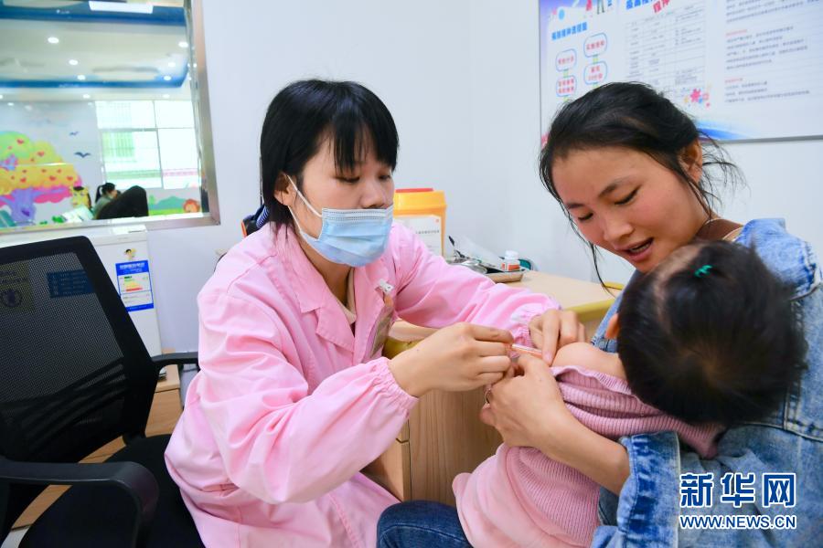 11月27日,在福建省三明市大田县均溪社区卫生服务中心,医务人员为儿童接种疫苗。