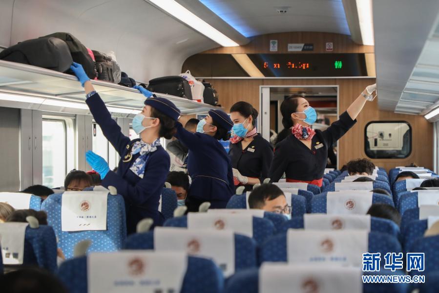 12月16日,东航甘肃分公司与兰州客运段的乘务员们在C8502次列车上共同进行安全检查。