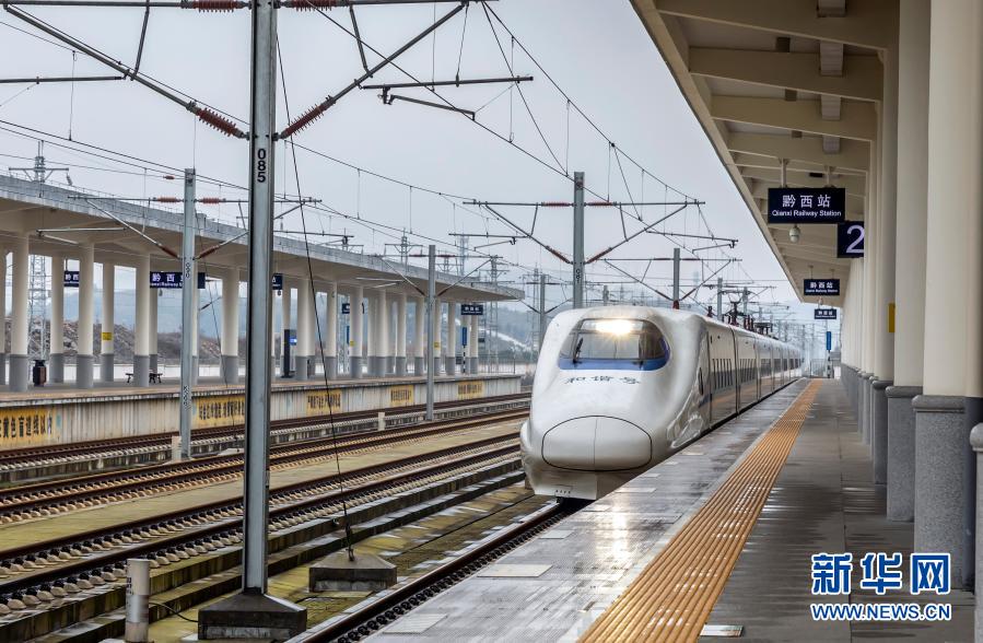 成贵高铁列车通过贵州黔西站(12月16日摄)。