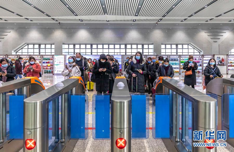 旅客在贵州黔西站闸机口前排队等待(12月16日摄)。