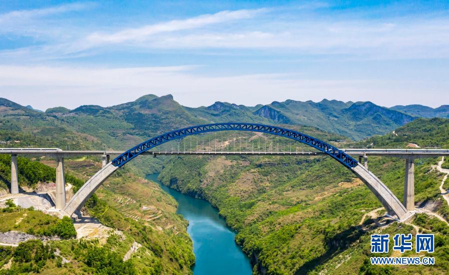 成贵高铁列车行驶在贵州省黔西县境内(4月28日摄)。