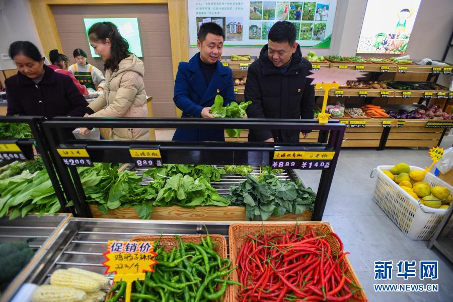 喻文辉(右一)和黄伏新(右二)在浏阳市炭棚生鲜直营店查看销售情况(11月26日摄)。湖南省浏阳市炭棚村于2017年脱贫摘帽,但由于产业基础相对薄弱、交通相对闭塞,存在返贫可能。为巩固扶贫成果,带动村民致富,扶贫工作队队长喻文辉计划继续发展蔬菜产业集体经济,帮助村民打造“开心农场”;村党总支书记黄伏新则想先把路修好,方便蔬菜运输。喻文辉挨家挨户走访,在对村里的情况进行深入了解后,决定支持黄伏新的想法。喻文辉和黄伏新相互分工又相互配合,进村路修好后,属于村集体经济的“开心农场”也紧随其后进行建设,还在浏阳市区开了生鲜直营店。如今,炭棚村以“公司+扶贫基地+农户”模式发展集蔬菜产销、观光旅游、田园生活体验为一体的产业项目,让村民在家门口实现增收。