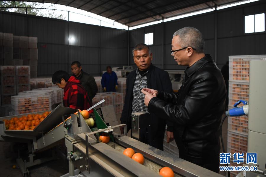 彭小刚(右)和江小平在石冲脐橙种植农民专业合作社的选果厂查看脐橙包装情况(12月3日摄)。湖南省株洲市茶陵县石冲村地处山区,今年44岁的彭小刚是驻村扶贫工作队长,今年56岁的江小平是村支书。两人带领村民大力发展脐橙产业,彭小刚出点子,江小平抓落实,努力提升脐橙品质,扩大脐橙销量。今年,全村脐橙产值预计将超过500万元。