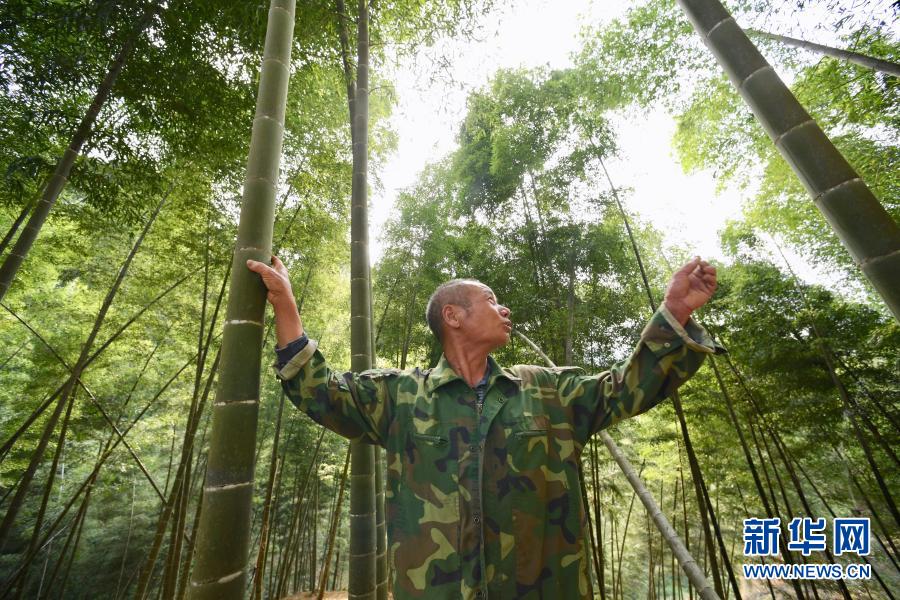 福建三明永安市洪田镇湍石村村民在查看毛竹长势(11月26日摄)。