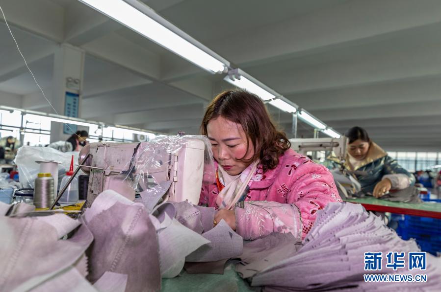 12月20日,工人在贵州省毕节市黔西县岔白工业园区一家制衣企业的生产车间加工服装。新华社发(范晖 摄)