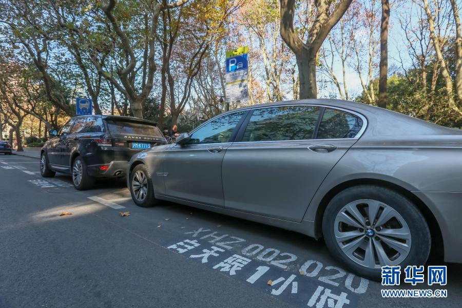 12月20日在徐汇区襄阳北路拍摄的限时长道路停车场,每个泊位专门增加“白天限1小时”辅助标志。