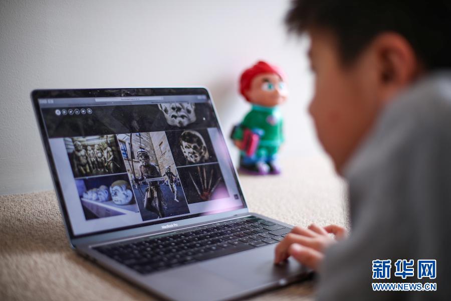 5月18日,在澳大利亚悉尼,一名停课在家的小学生浏览一家博物馆的在线展览。因新冠疫情而关闭的众多澳大利亚博物馆在各自网站上线了多种“云展览”。
