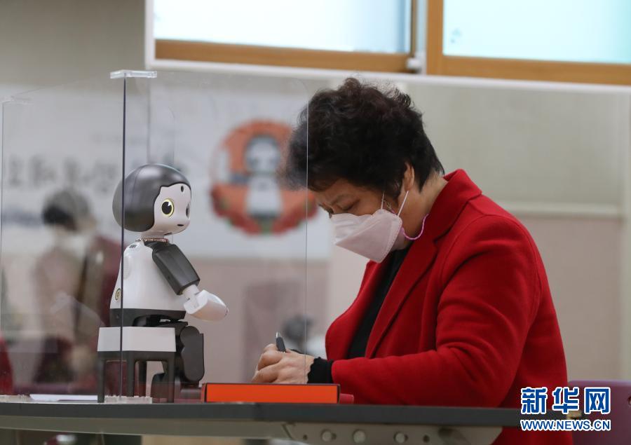 11月16日,一名老人在韩国首尔阳川区一处老年福利文化中心利用数码教学机器人“LIKU”学习智能手机使用技能。作为韩国产业通商资源部“机器人普及项目”的一部分,首尔以3000名老年人为对象进行无接触式数码技能教育,利用机器人和其他多种手段,提高老年人群的数码设备使用技能。
