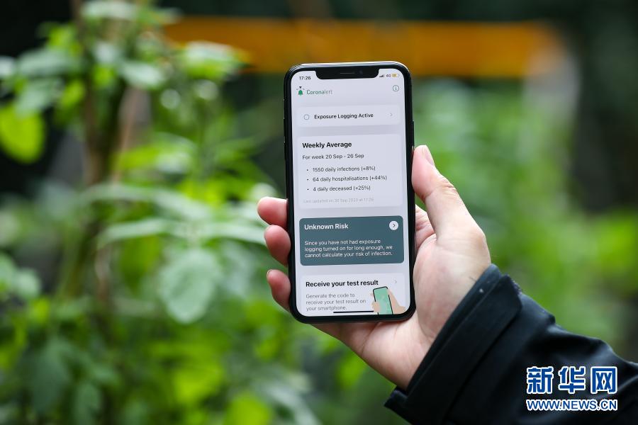 这是9月30日在比利时布鲁塞尔拍摄的一部安装了新冠病毒追踪定位App的手机。当日,比利时正式发布了名为“Coronalert”的新冠病毒追踪定位的应用程序,该程序在检测到用户附近有人确诊新冠后将提醒用户。