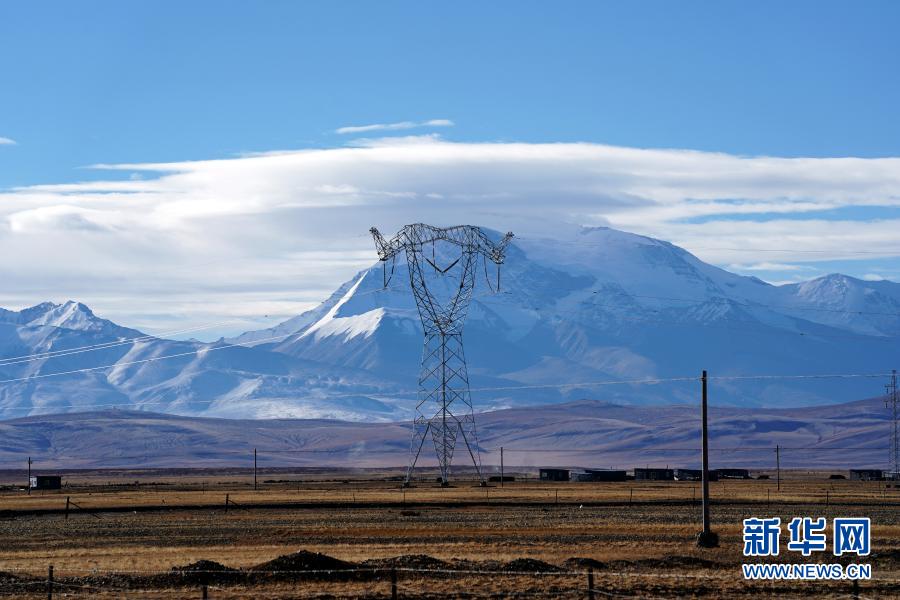 这是11月29日在西藏阿里地区普兰县拍摄的西藏阿里与藏中电网联网工程输电铁塔。新华社记者 詹彦 摄