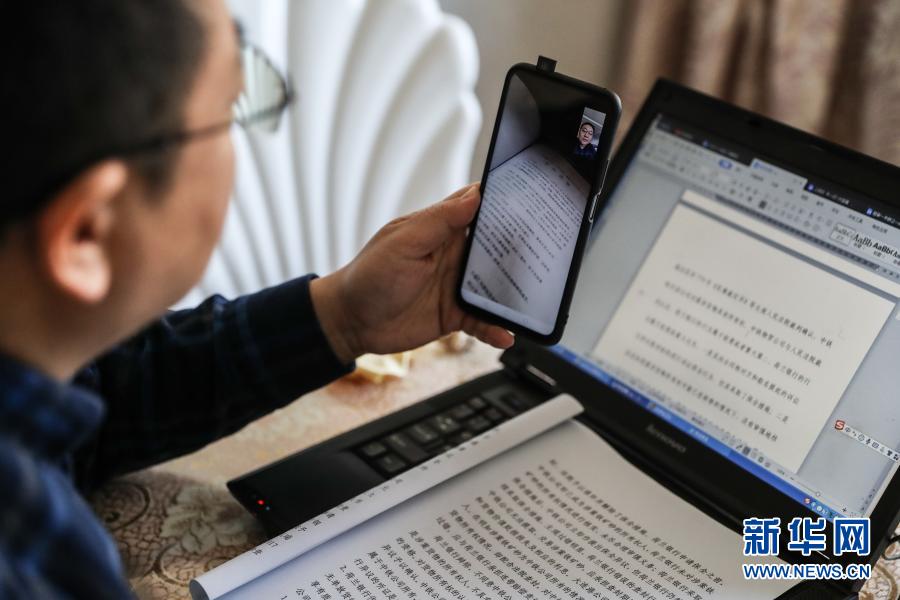 2月4日,辽宁省高级人民法院居家办公的法官通过视频与在单位的法官研讨案件。新华社记者 潘昱龙 摄