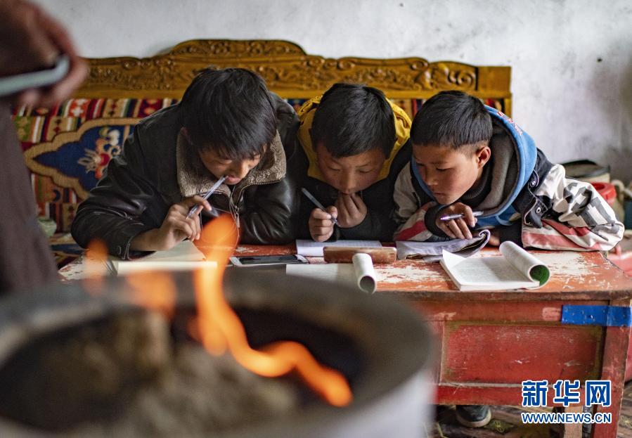 3月6日,西藏当雄县乌玛塘乡巴嘎村的孩子们在上网课。新华社记者 普布扎西 摄