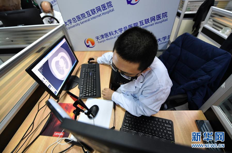 3月3日,天津医科大学总医院的医生用手机视频进行线上问诊。新华社记者 李然 摄