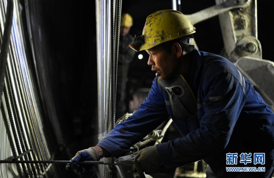 12月22日,工人在黄黄铁路大金一号隧道内施工。