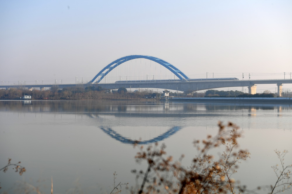 12月22日,一列高铁列车经过安徽肥西花岗特大桥。新华社记者刘军喜摄