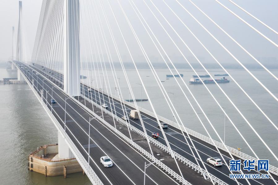 12月24日,车辆行驶在南京江心洲长江大桥上(无人机照片)。新华社发(苏阳 摄)