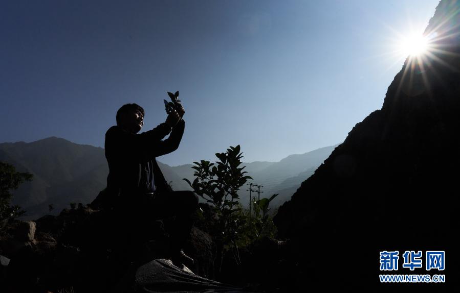 李进学在观察橘树叶片生长情况(12月19日摄)。新华社记者 江文耀 摄