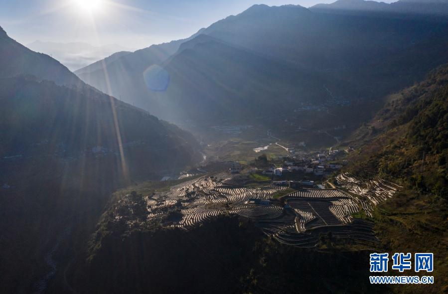 空中俯瞰云南省怒江傈僳族自治州泸水市老窝镇老窝村(12月20日摄,无人机照片)。新华社记者 江文耀 摄