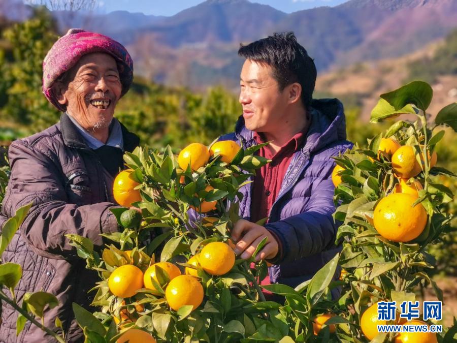 李进学(中)指导村民科学种植(2019年12月9日摄)。新华社发