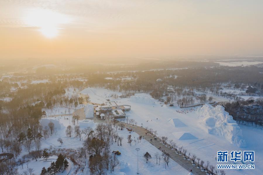 12月25日,游客在哈尔滨太阳岛“雪博会”园区游玩(无人机照片)。新华社记者 谢剑飞 摄