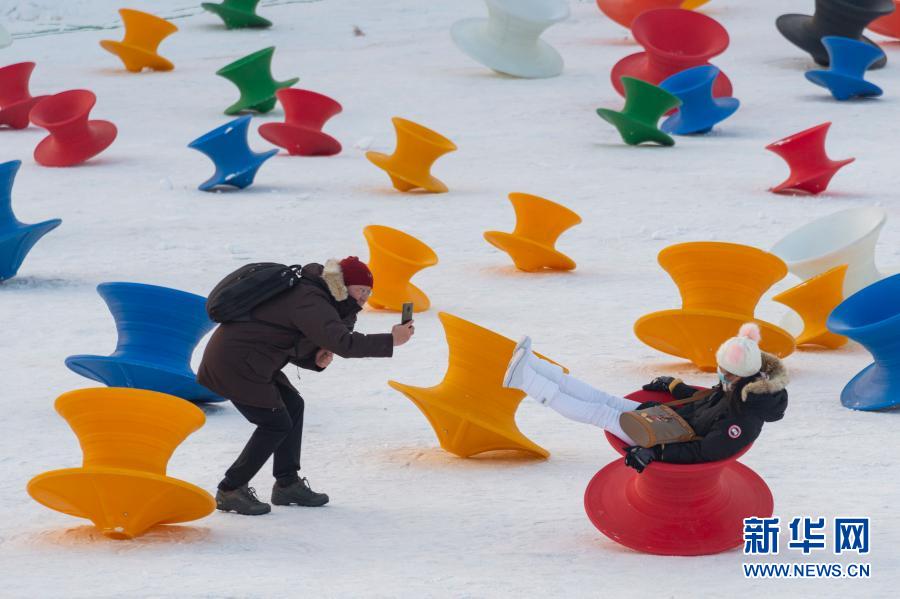 12月25日,游客在哈尔滨太阳岛“雪博会”园区游玩。新华社记者 谢剑飞 摄