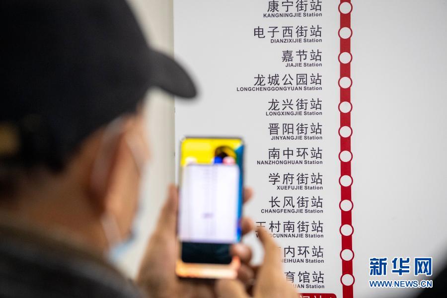 12月26日,市民在太原市轨道交通2号线大南门站拍摄站点信息。新华社记者 杨晨光摄