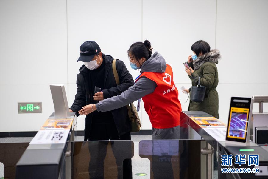 12月26日,在太原市轨道交通2号线开化寺街站,市民在工作人员的引导下凭票进站。新华社记者 杨晨光摄