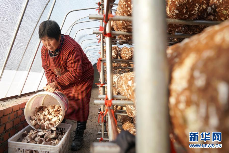 12月26日,农民在河北省邢台市内丘县下马庄村食用菌种植基地大棚内整理采摘的香菇。新华社发(刘继东 摄)