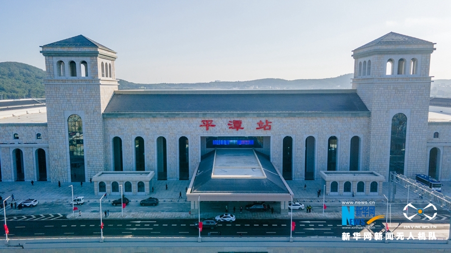 这是12月26日拍摄到的平潭站站房,像一座城堡(无人机照片)。新华网 肖和勇 摄