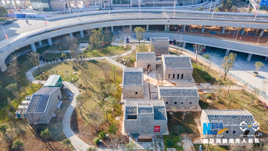 这是12月26日拍摄到的平潭站站前广场一隅,独具特色“石头厝”充满海岛风情(无人机照片)。新华网 肖和勇 摄