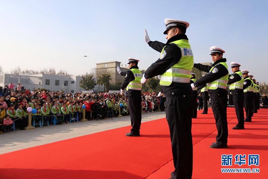 12月26日,交警向市民演示交通指挥手势操。新华社发(万善朝 摄)