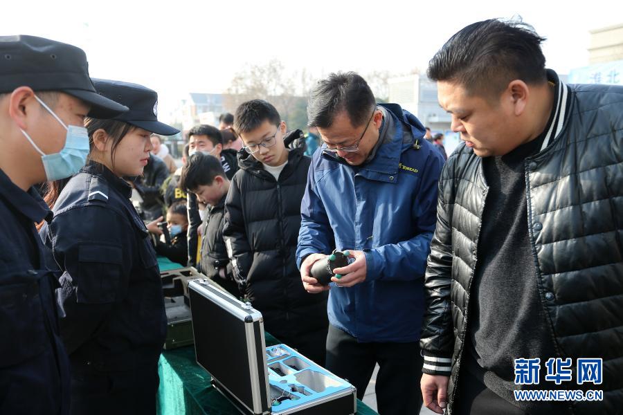 12月26日,淮北市民在参观了解警务装备。新华社发(万善朝 摄)