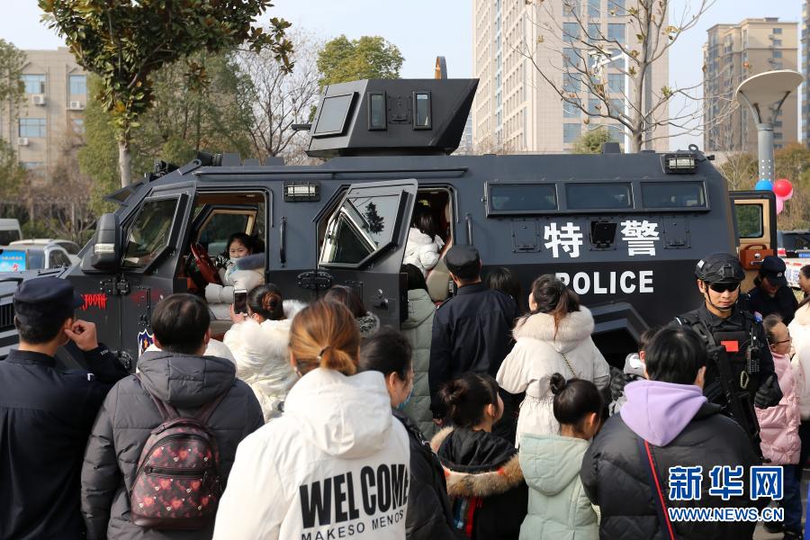 12月26日,淮北市民在参观特警车辆。新华社发(万善朝 摄)