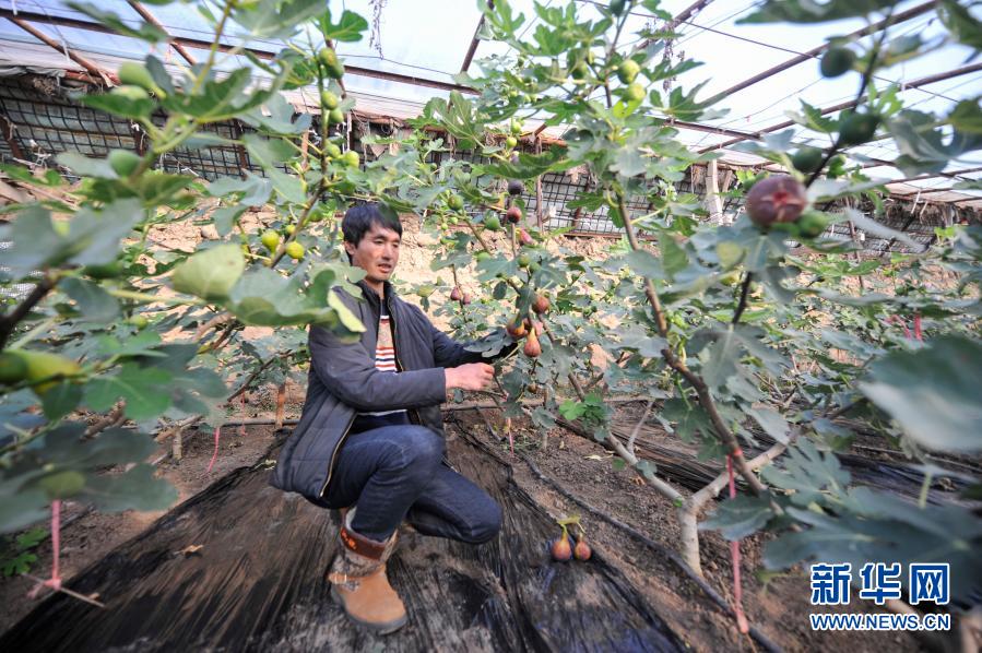 12月26日,在承德市双滦区偏桥子镇一无花果采摘园,果农在大棚内对无花果进行田间管理。