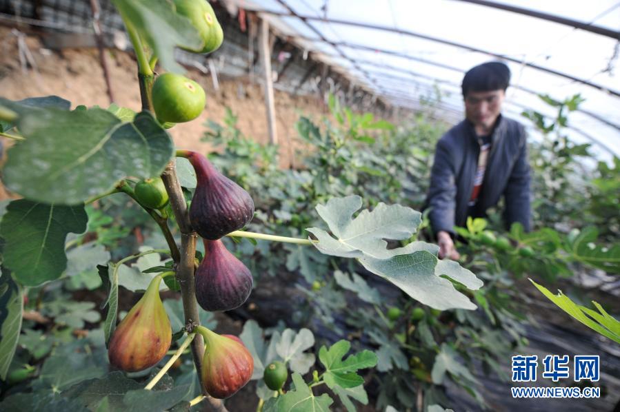 12月26日,在承德市双滦区偏桥子镇一无花果采摘园,果农在大棚内对无花果进行田间管理。新华社发(王立群 摄)