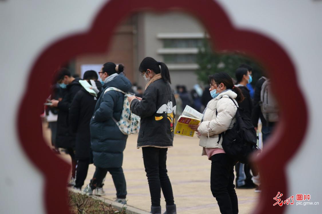 2020年12月26日,考生在江苏理工学院考点作最后复习。(陈暐摄/光明图片)