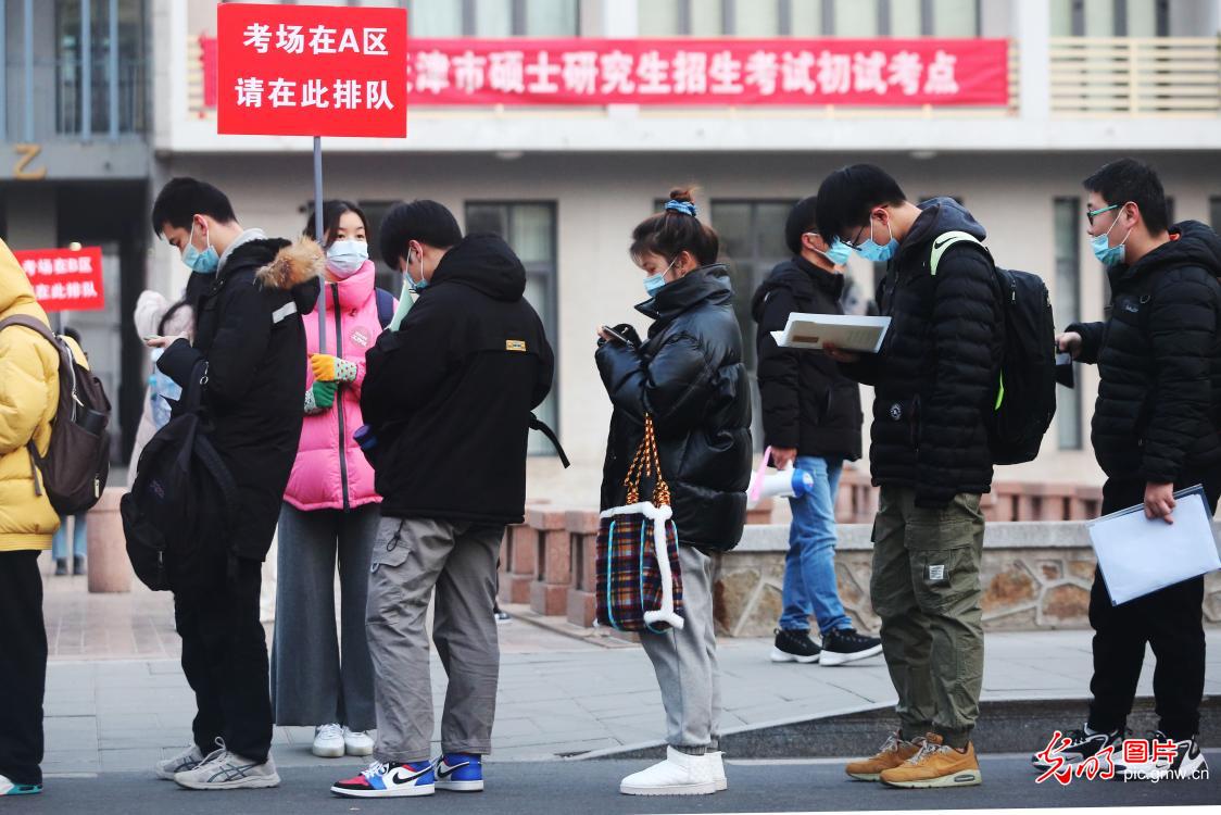 2020年12月26日,在位于天津的南开大学考点考生们有序排队准备进场考试。(刘东岳摄/光明图片)