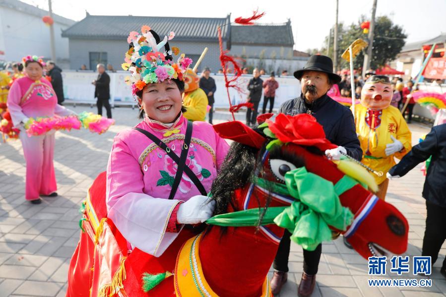 12月27日,民间艺人在河南省平顶山市宝丰县张八桥镇姚店铺村表演非遗“跑驴”。