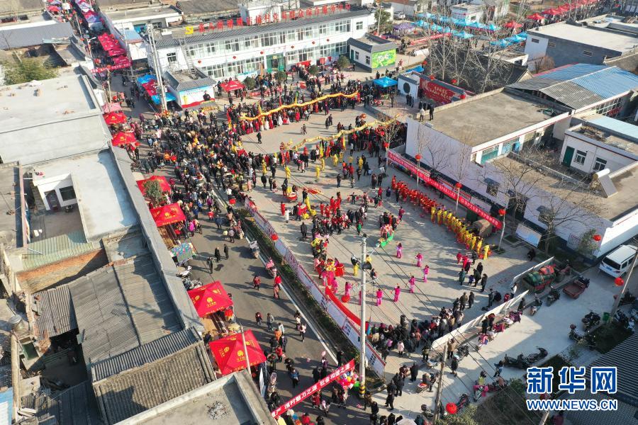 12月27日拍摄的河南省平顶山市宝丰县张八桥镇姚店铺村非遗大集(无人机照片)。