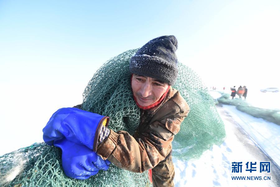 新疆阿勒泰地区福海县乌伦古湖每年12月中下旬进入“冬捕”季。乌伦古湖是中国十大内陆淡水湖之一,冬季冰上大拉网捕鱼是乌伦古湖的传统捕鱼方式,场面壮观。