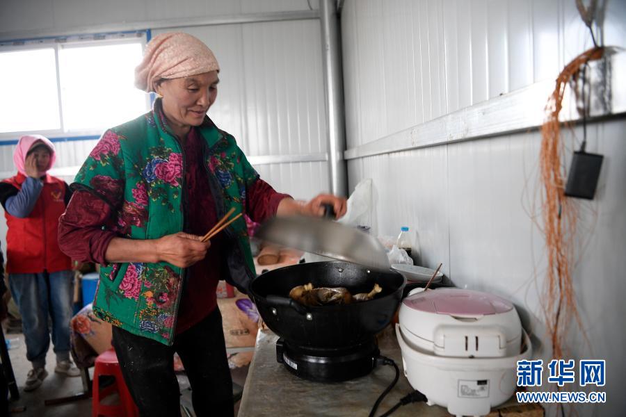 李耀梅为工人准备了晚饭(10月26日摄)。新华社记者 杨植森 摄