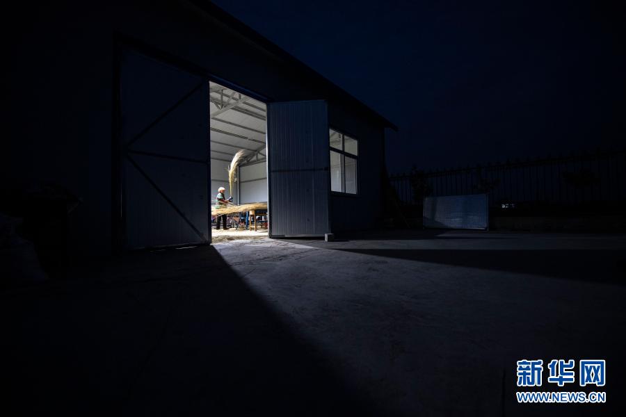 工人下班后,李耀梅一个人还在扎扫帚(10月26日摄)。新华社记者 冯开华 摄