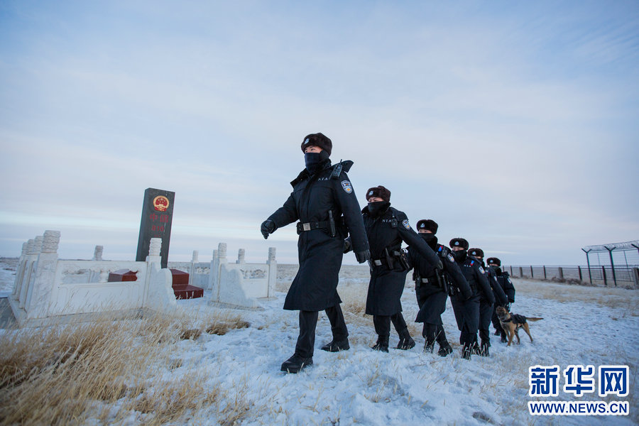 12月28日,二连出入境边防检查站民警在中蒙边境一线执勤巡逻。新华网发(郭鹏杰 摄)