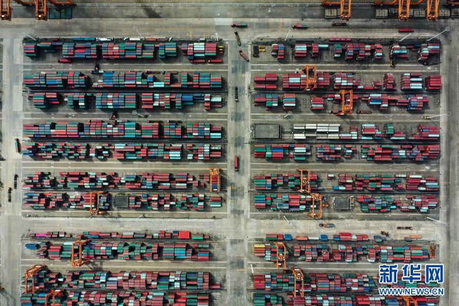 这是钦州港码头存放的集装箱(11月19日摄,无人机照片)。