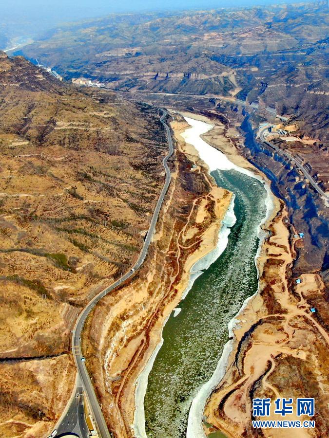 壶口瀑布至龙门水文站之间的黄河(12月26日摄,无人机照片)。新华社记者 刘诗平 摄