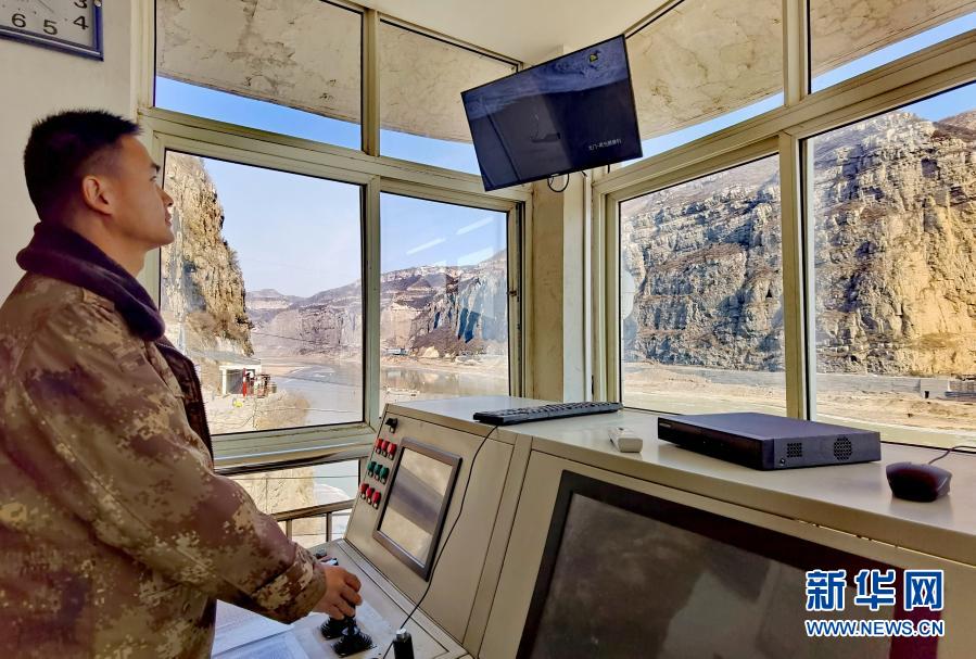 龙门水文站工作人员在缆道操作机房内操控缆道进行流量测验(12月27日摄,手机照片)。新华社记者 刘诗平 摄