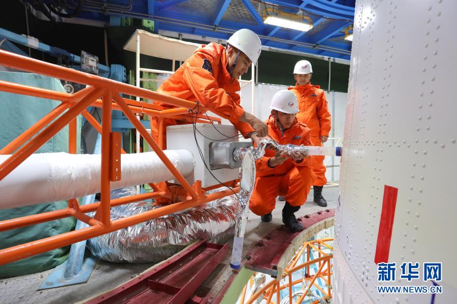 酒泉卫星发射中心工作人员在为火箭送暖风(12月24日摄)。新华社发(姚军鹏 摄)