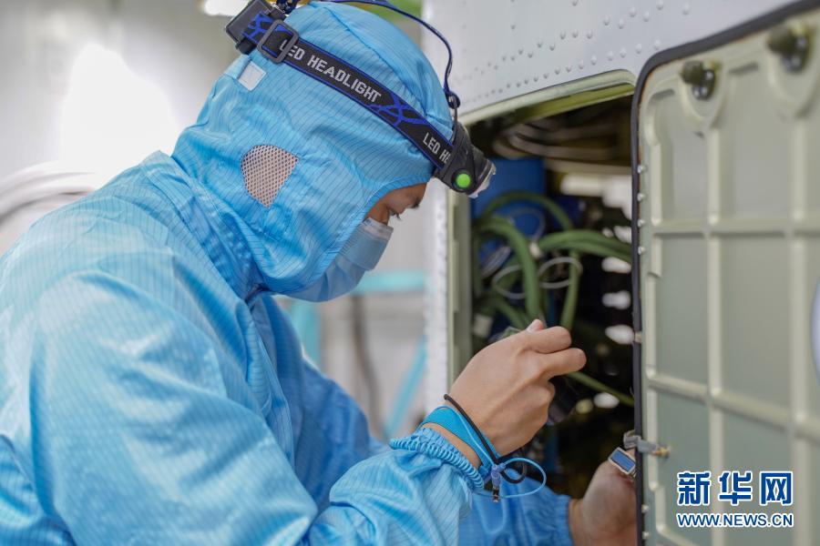 酒泉卫星发射中心工作人员对火箭进行状态确认(5月30日摄)。新华社发(胡军 摄)