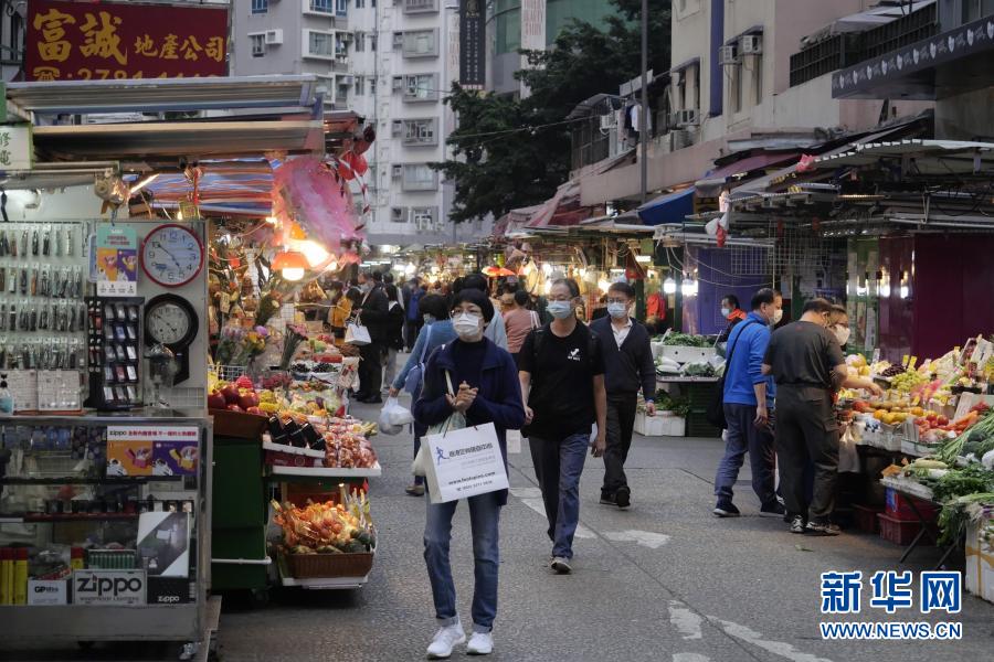 12月28日,在香港旺角,市民佩戴口罩逛露天市场。