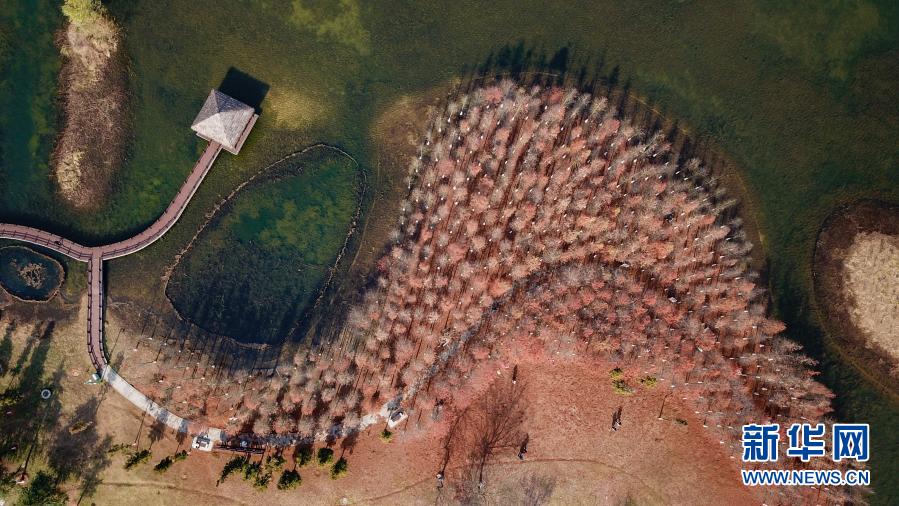 这是在湖南松雅湖国家湿地公园拍摄的水杉(12月30日无人机照片)。